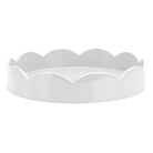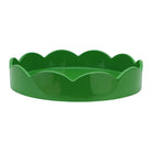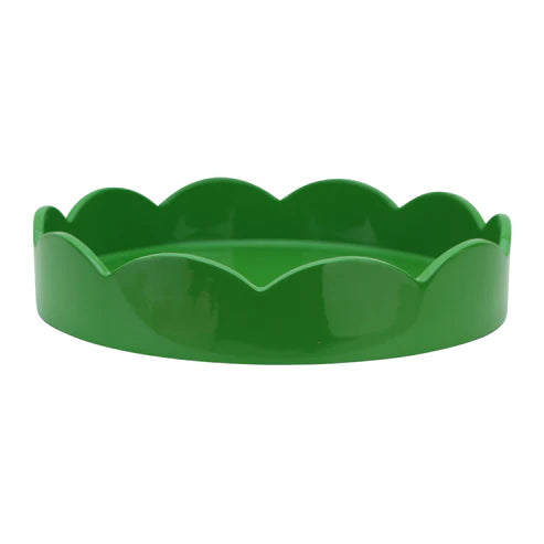 A pretty round scallop small tray finished in 20 coats of high gloss lacquer, hand polished between each coat. The base is painted black satin and embossed with our logo.