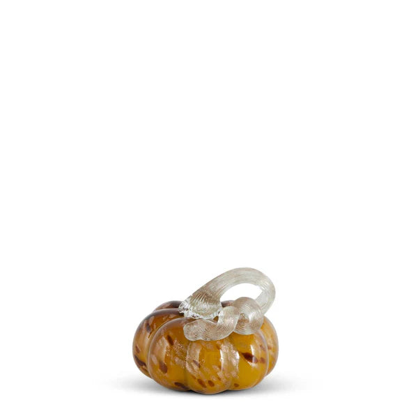 YELLOW SPECKLED HANDBLOWN GLASS PUMPKIN