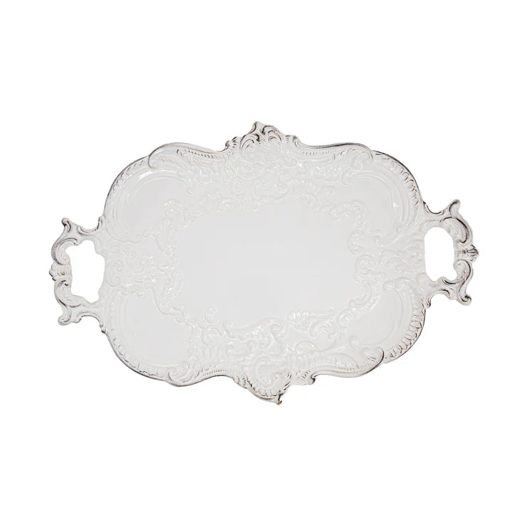 Also included in this collection is our two handled Baroque Tray, inspired by the ornate and sumptuous designs of 17th century Italy. It has been a stunning addition to the collection and comes in Cream, White, Blue and Black. Makes a beautiful every day display piece as well. Handmade in the Veneto region of Italy. Expertly crafted in the Veneto region of Italy, our two handled Baroque Tray is an exquisite addition to your collection. Inspired by the lavish designs of 17th century Italy, it is available in Cream, White, Blue, and Black. Not only a beautiful everyday display piece, but also a testament to the beauty and intricacy of Italian craftsmanship.