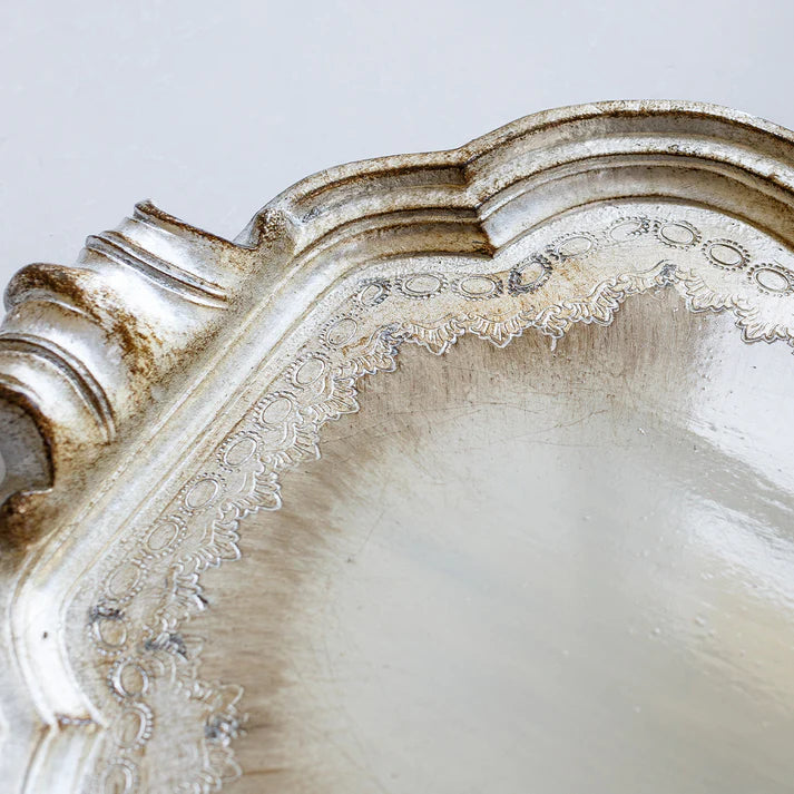 Our classic Florentino Wooden Tray features an exquisite antique gold and silver design, making it a stunning choice for serving or as an everyday accent piece. Available in two sizes, Extra Large and Large, this tray seamlessly blends style and utility.