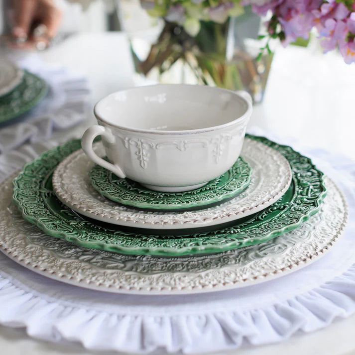 Available in classic white and deep Italian green, this bowl adds a touch of sophistication and classical beauty to any table setting. Its design is not only elegant but also versatile, making it a perfect match for various collections, especially our new Imperial line.