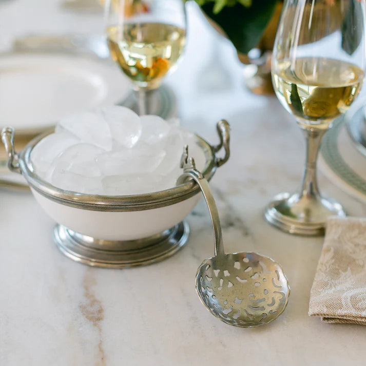 Ideal for use with a small ice bucket or for serving items that need straining, this versatile spoon will quickly become an indispensable part of your kitchen. The Taverna Decorative Spoon is presented in a lovely linen pouch, adding a touch of sophistication to your dining experience. This decorative spoon is not only versatile, but it also allows for effortless straining and serving. The Taverna Decorative Spoon is elegantly presented in a linen pouch, elevating your dining experience with a touch of sophistication.