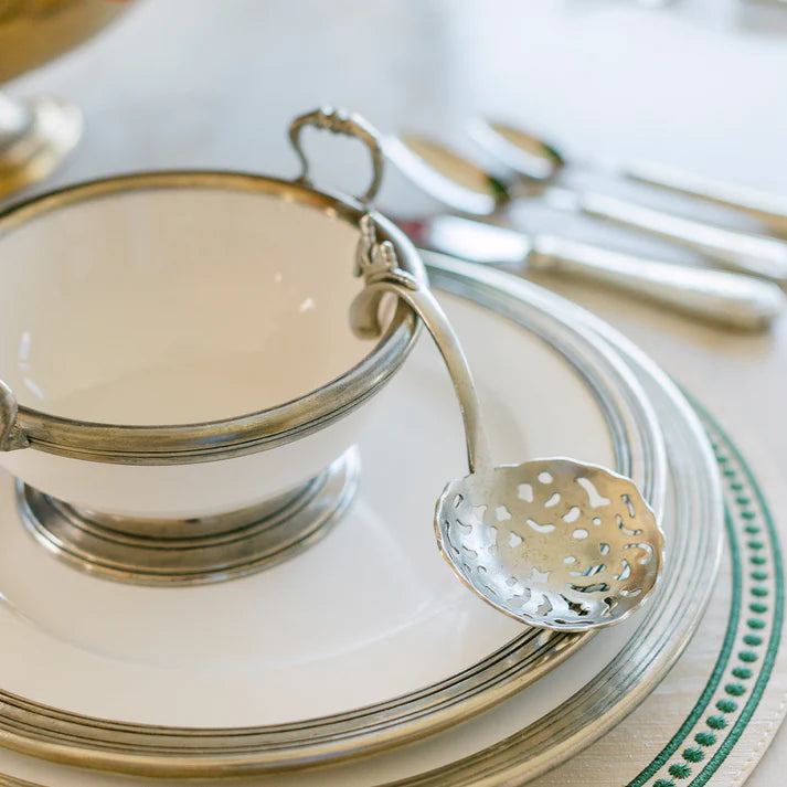 Experience the simple joys of everyday elegance with the Taverna Decorative Spoon. Inspired by the timeless charm of Arte Italica, this exquisite spoon captures the essence of Italian craftsmanship. Crafted from the highest quality pewter by skilled artisans in the Lombardy Region of Italy, this slotted spoon is both beautiful and functional. Expertly crafted for the perfect balance of beauty and functionality, this decorative spoon is a stunning addition to any kitchen. Made from the finest pewter by skilled artisans in Italy's Lombardy Region, it's a unique piece that adds a touch of elegance to your everyday cooking experience.