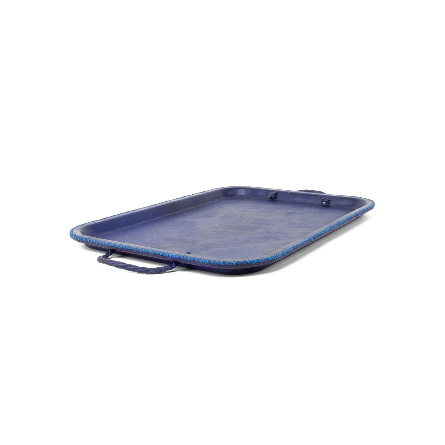 LEATHER SERVING TRAY WITH BRAIDED HANDLES