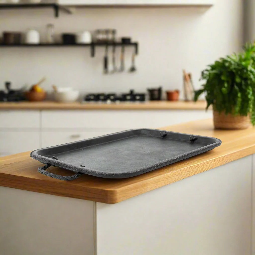 Crafted from premium Bati leather, this serving tray is thoughtfully treated with organic ingredients that provide water resistance, allowing it to handle spills and moisture with ease—simply let it air dry after use. Its robust construction ensures long-lasting durability, making it suitable for frequent entertaining. Ideal for serving food and drinks, this tray adds a sophisticated touch to hosting gatherings, effortlessly blending style with practicality. Beyond its functional appeal, it also makes an exceptional gift for friends or family who appreciate elegant entertaining accessories and enjoy creating memorable social experiences.