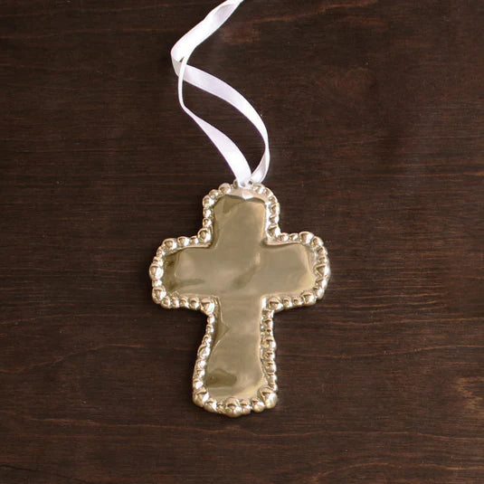 Beatriz Ball SIERRA MODERN ORGANIC PEARL CROSS ORNAMENT (Shiny Gold)