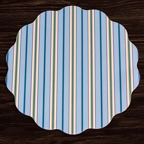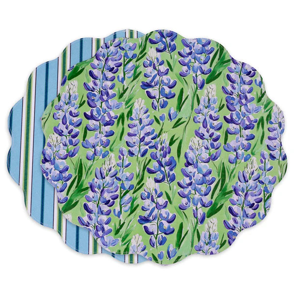 BEATRIZ BALL VIDA BLUEBONNET & STRIPES REVERSIBLE PLACEMATS - BLUE AND GREEN