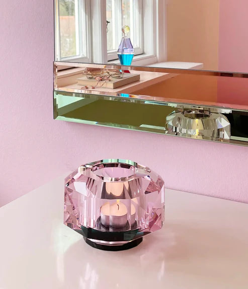 The Texas Supreme Tealight in Deep Green/Rose from Reflections Copenhagen is a sophisticated, larger take on the classic Texas design, bringing an elevated sense of luxury to any space. Handcrafted from fine, hand-cut crystal, this tealight holder allows light to filter through the intricately cut surfaces, creating a captivating play of light and shadow. The larger size enhances this effect, showcasing the crystal's ability to reflect and refract the light in mesmerizing ways.