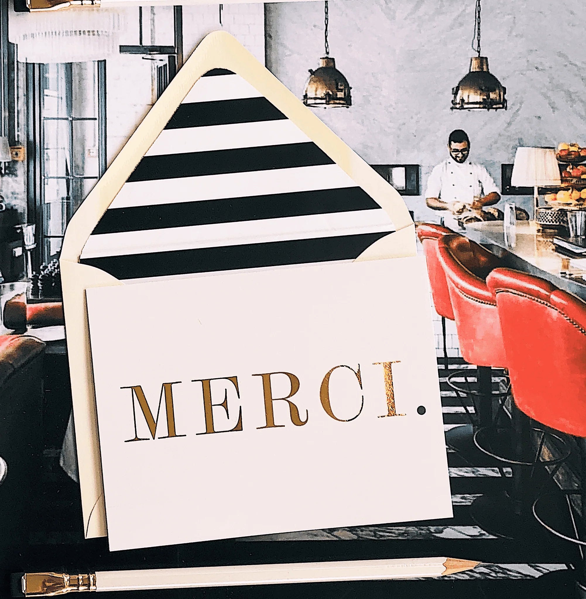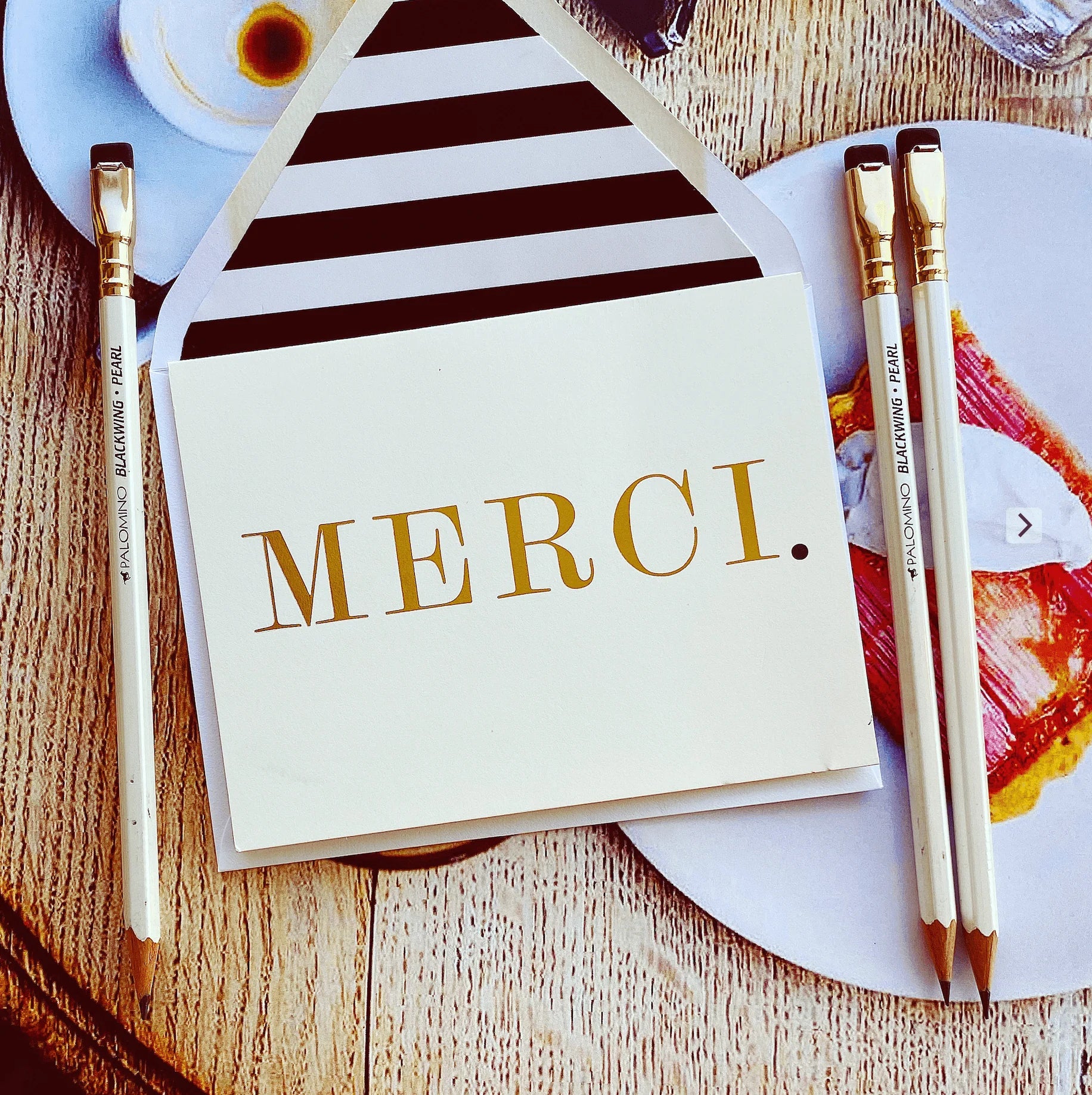 Grand gestures and kind words call for handwritten notes on pretty, personalized stationery. This sweet shimmering golden thank you card lets your show your (equally sweet) gratitude whether you're sending it from near, far or right across the street.