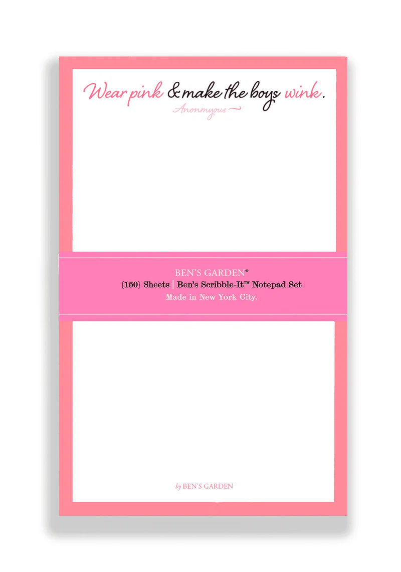 - "Wear Pink And Make The Boys Wink" Scribble Notepad Set Of 3