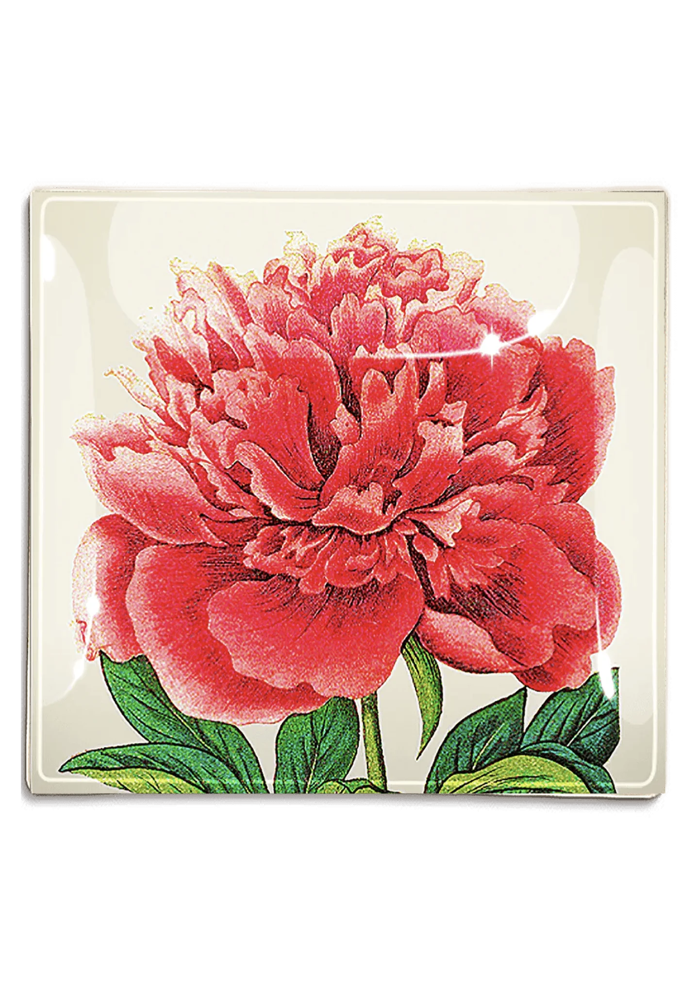 This artisan crafted pink peony decoupage glass tray is an elegant addition to any home. Crafted using the expert French technique of intricate glass decoupage, this unique tray is perfect for displaying home décor pieces. This illustration reflects Ben's unique aesthetic for the charming and unusual. Each is individually signed by Ben. Made one by one, in our Ben's Garden New York City studio, this tray is sure to last for years, making it a timeless piece for any home.