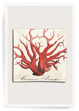 Discover the artistry of the Red Coral Decoupage Glass Tray, an 8" x 8" masterpiece handcrafted in our New York studio, embodying the elegance of the French decoupage tradition. The tray features a striking red coral illustration, a testament to Ben's distinctive eye for the captivating and unique. Each piece is meticulously handcrafted and individually signed by Ben, ensuring that no two trays are exactly alike.