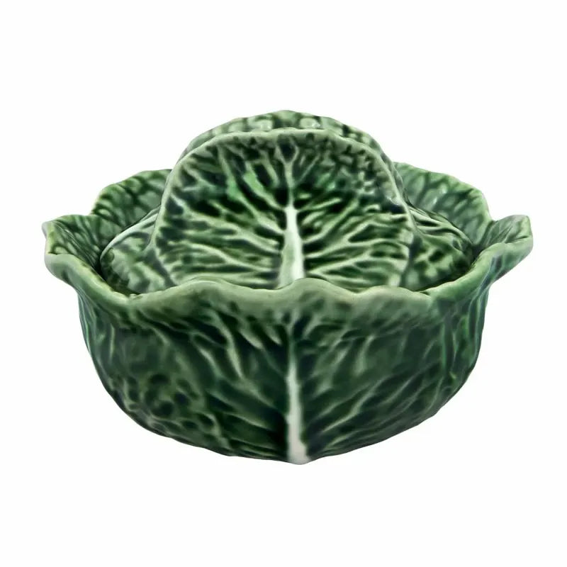 Cabbage, in its rough and flat form, could be used as a metaphor for Portugal’s rustic ways. Think of the Calda Verde soup that's so basic in Portuguese cuisine. Because of this importance, Bordallo many times depicted the cabbage in his work. This dinnerware was a clever way to honour it, by making it nice enough for the tables of the bourgeois families, who at one time would have considered the common cabbage too lowly to serve.