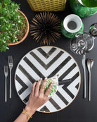 A celebration of art, fashion, and fine porcelain, the Sol Y Sombra Bread and Butter Plate brings bold sophistication to your table. Designed in collaboration with Maison Christian Lacroix for Vista Alegre, this piece fuses contemporary design with timeless craftsmanship. The striking black-and-white striped watercolor motif is enhanced with shimmering hand-painted details in platinum and 24k gold, creating a dynamic interplay of light, shadow, and metallic brilliance.