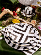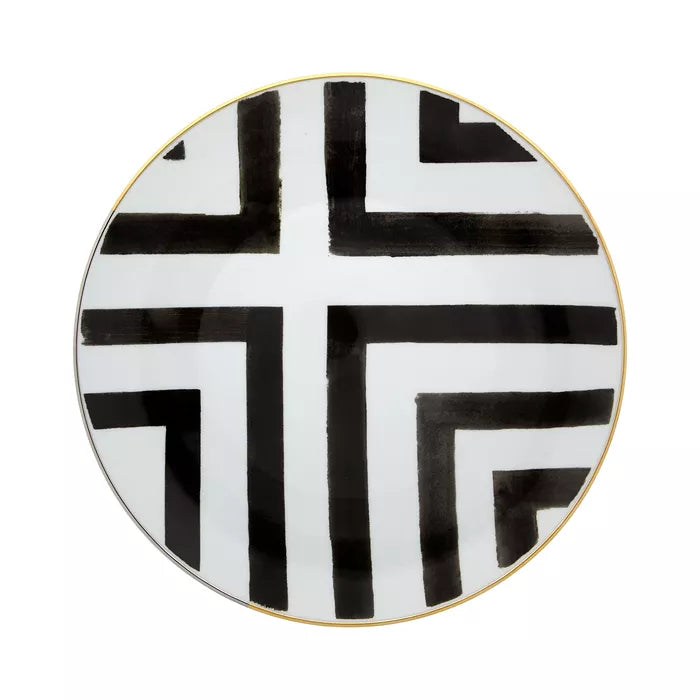 Each plate is expertly handcrafted in Portugal by skilled artisans, resulting in unique variations in brushwork and metallic accents for every piece. This commitment to traditional artistry transforms each plate into both a practical dinnerware item and a collectible masterpiece. The Sol y Sombra Dinner Plate captures the playful yet refined essence of Christian Lacroix, infusing haute couture elegance into your dining setting. Suitable for formal gatherings or chic everyday use, it pairs beautifully with coordinated collection pieces or diverse tableware to craft a distinctive and elegant tablescape. Its classic design and luxurious details make it ideal for sophisticated dinners, special celebrations, or as a tasteful gift for those with discerning tastes.