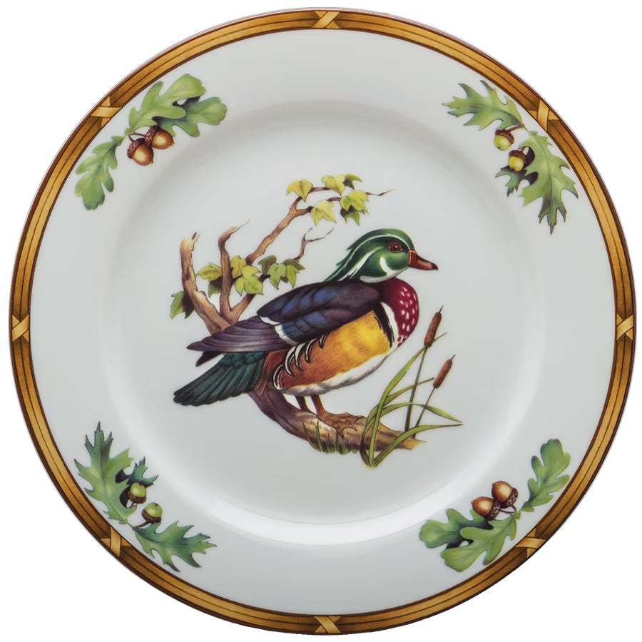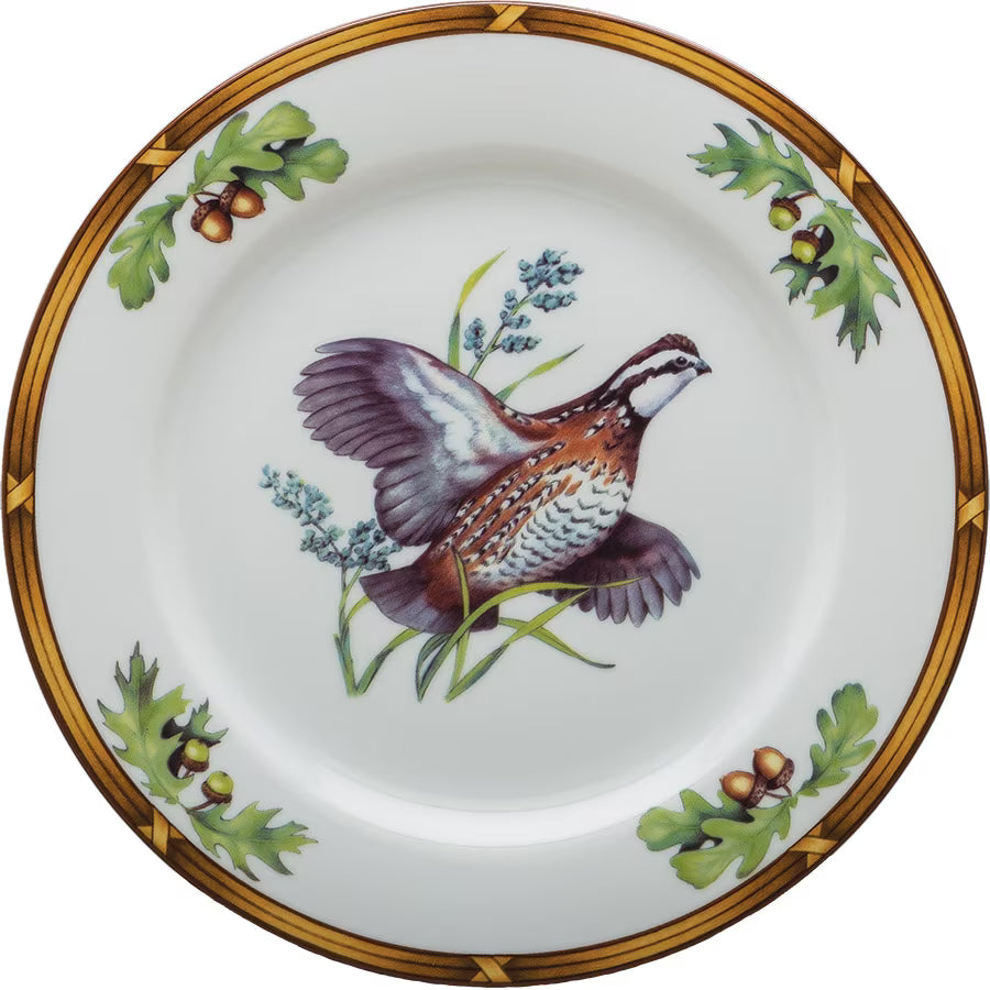 these beautiful Gamebirds Salad Plate are the perfect pairing with the Gold Oak Dinner Plate