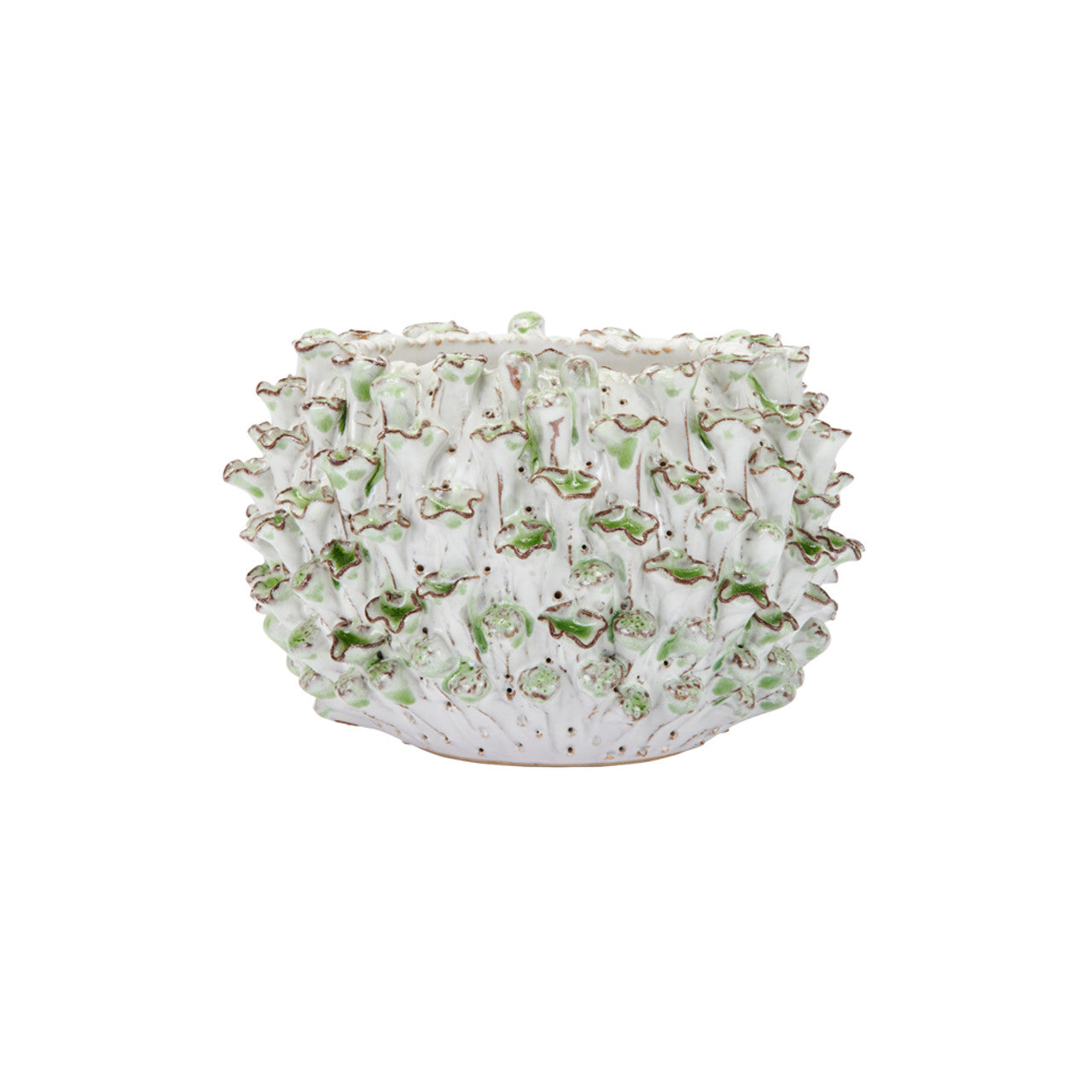 Elegance in every detail, this hand-crafted vase is a testament to the skill of master craftsmen. Each curve and contour are meticulously sculpted and finished with a glossy soft green and white glaze, creating a truly stunning piece of art. Whether it graces a room as an accent piece or cradles your favorite blooms, its beauty is undeniable. Hand-crafted in Thailand, this vase adds a touch of timeless elegance to any space, making a statement wherever it finds its place.