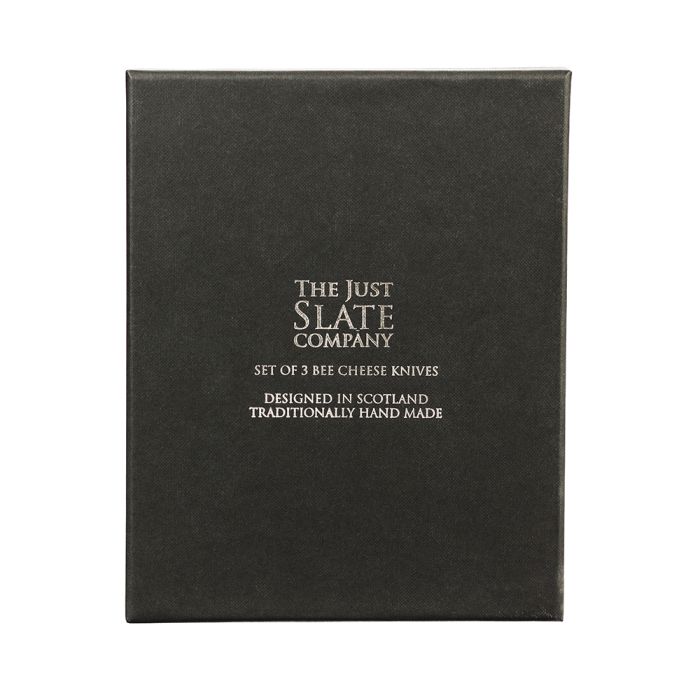 This beautiful trio of cheese knives is sure to look great arranged next to your slate or oak cheese board. With their fun, gold bee designed handles and different shaped blades these knives will help you serve a variety of your favorite cheeses with ease, and in incredible style! Complete with a high quality gift box this cheese set is an ideal engagement, wedding, housewarming or birthday gift. Elevate your cheese board game with our luxurious trio of cheese knives. The gold bee designed handles and unique blade shapes add an elegant and playful touch to your cheese serving experience. Gift yourself or your loved ones with this premium cheese set, perfect for special occasions like engagements, weddings, housewarmings, and birthdays.