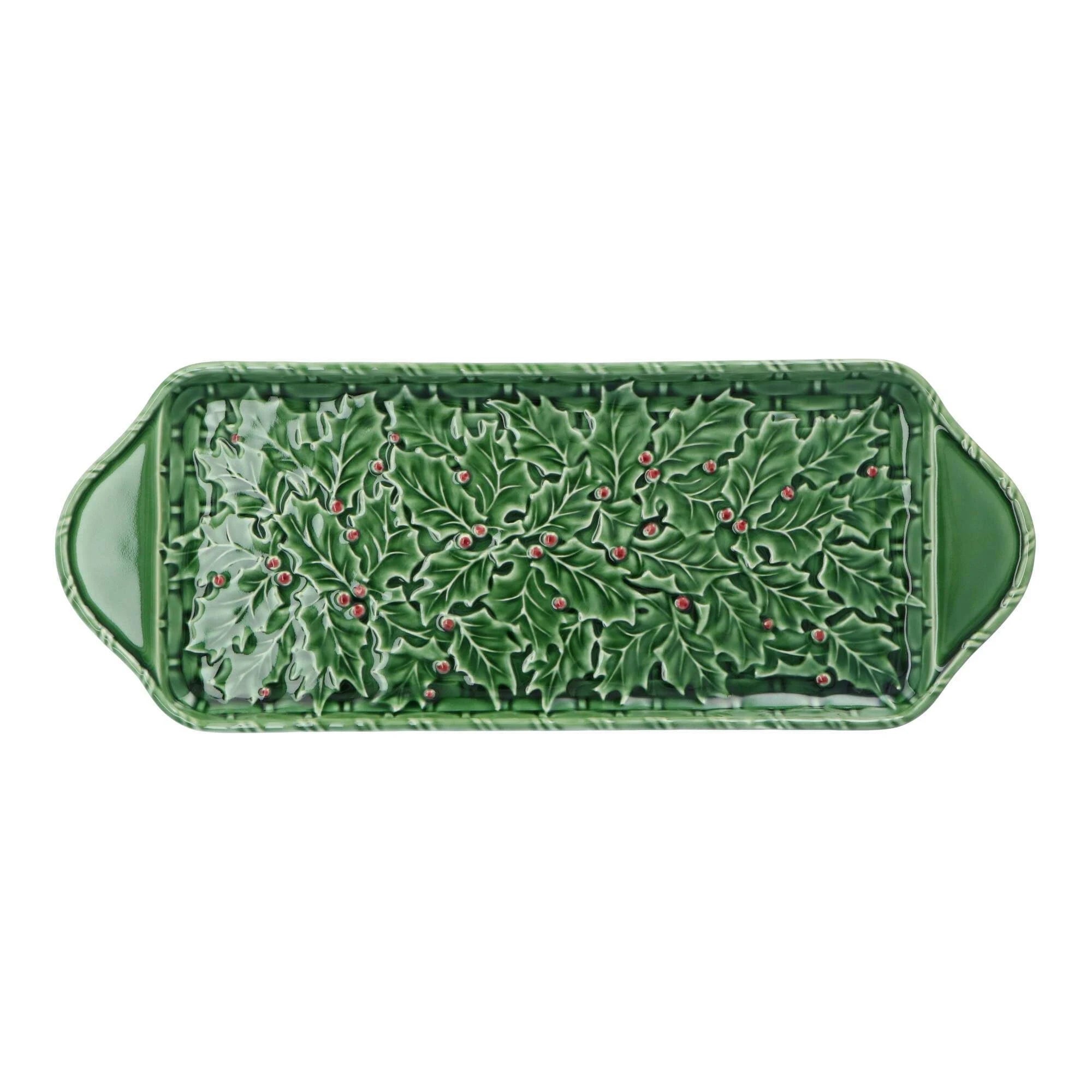 This hand-painted earthenware tray showcases the artisanal mastery of craftspeople trained in the Bordallo Pinheiro tradition. Each piece features an intricately embossed holly motif—a timeless emblem of the holiday season enhanced by a reactive glaze that ensures no two trays are identical.