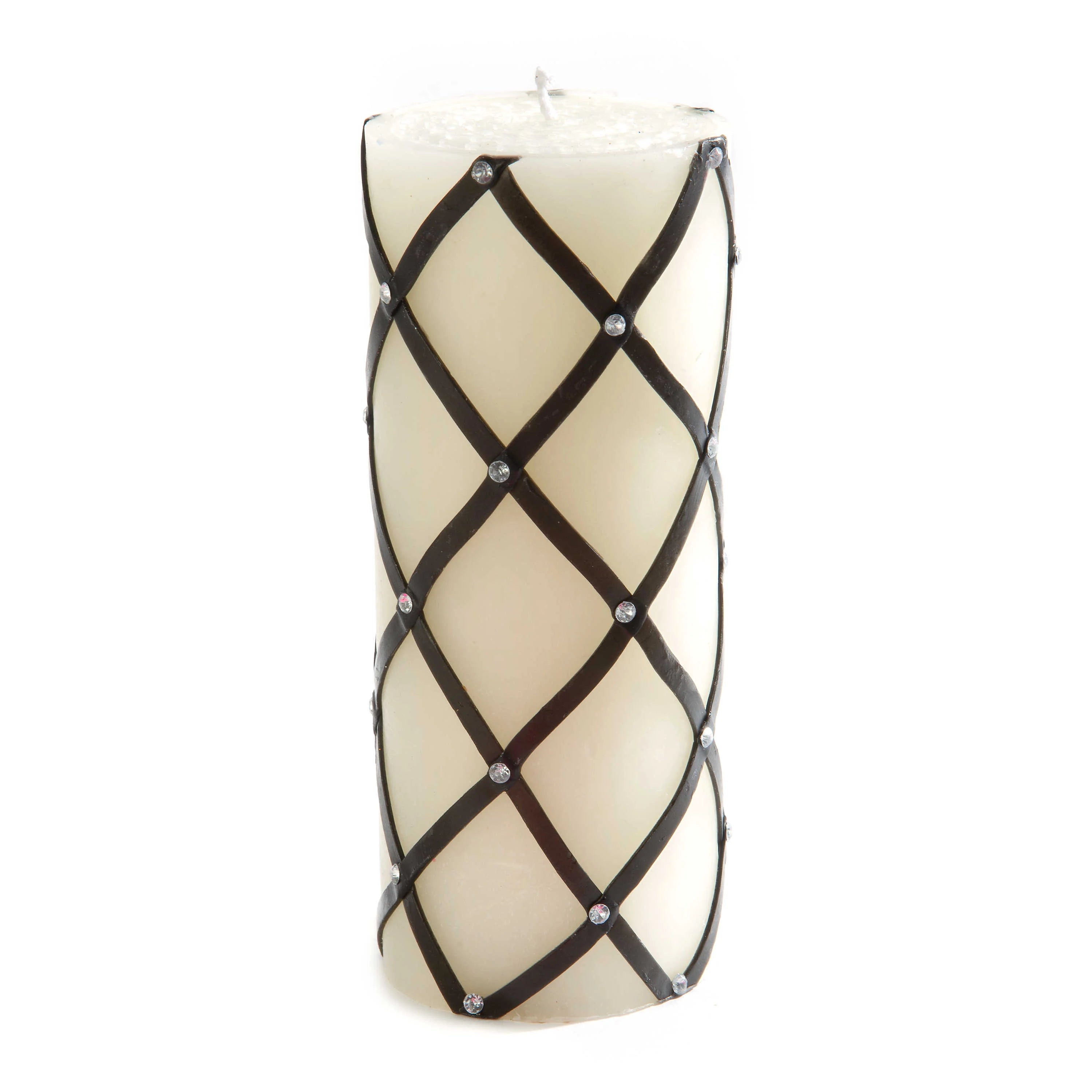 Black Sparkly Fishnet Pillar Candle with Rhinestone Accents