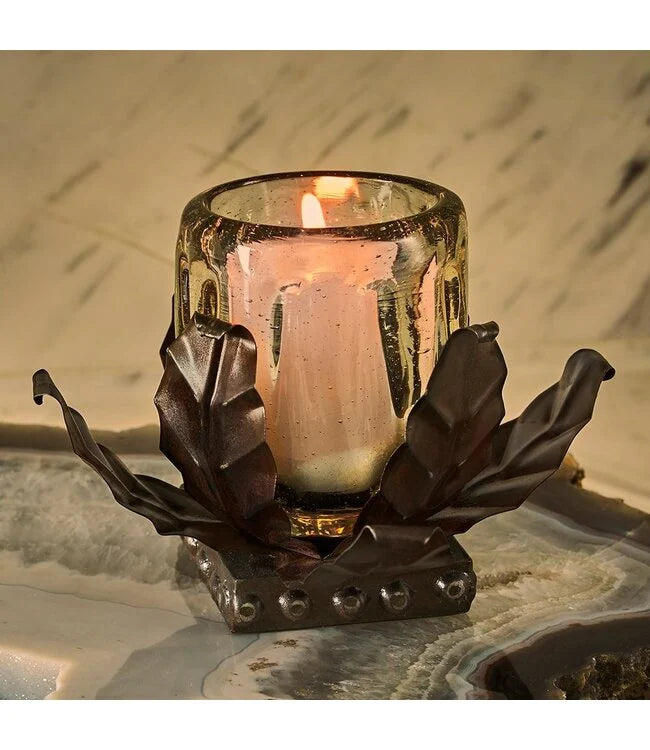 Add a touch of elegance and beauty to your home with the Jan Barboglio Thomasa Candle. This flowering votive features a unique design with a forged and cast base paired with ribbed mouth-blown glass. The adjustable leaves allow you to customize the look and feel to fit your personal style, making it a stunning addition to any space. Elevate any room with the Jan Barboglio Thomasa Candle. With a forged and cast base and grooved hand-blown glass, this floral candle brings both sophistication and charm to your home. The customizable leaves give it a personal touch, making it the perfect complement to any decor.