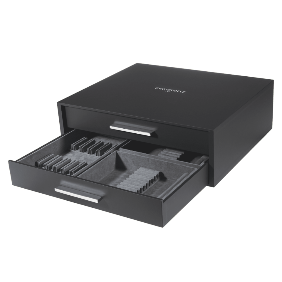 This storage chest is perfect for those who value premium silverware and seek a customized solution to safeguard and extend the life of their collection. Designed for easy upkeep, the modules are removable for cleaning, and the included anti-tarnish cloth helps keep your cutlery pristine with minimal effort. As part of Christofle’s Silver Care range, this chest combines sophistication with practicality, making it an essential piece for silverware connoisseurs.