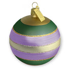 These ornaments are meticulously crafted using mouth-blown glass and hand-painted with intricate horizontal stripes for a distinctive and artistic touch. The ornaments are adorned with glitter detail, adding a touch of sparkle and festive charm to your decorations. Each ornament has a weight of approximately 2.58 grams, making them easy to hang and display on your Christmas tree or around your home.