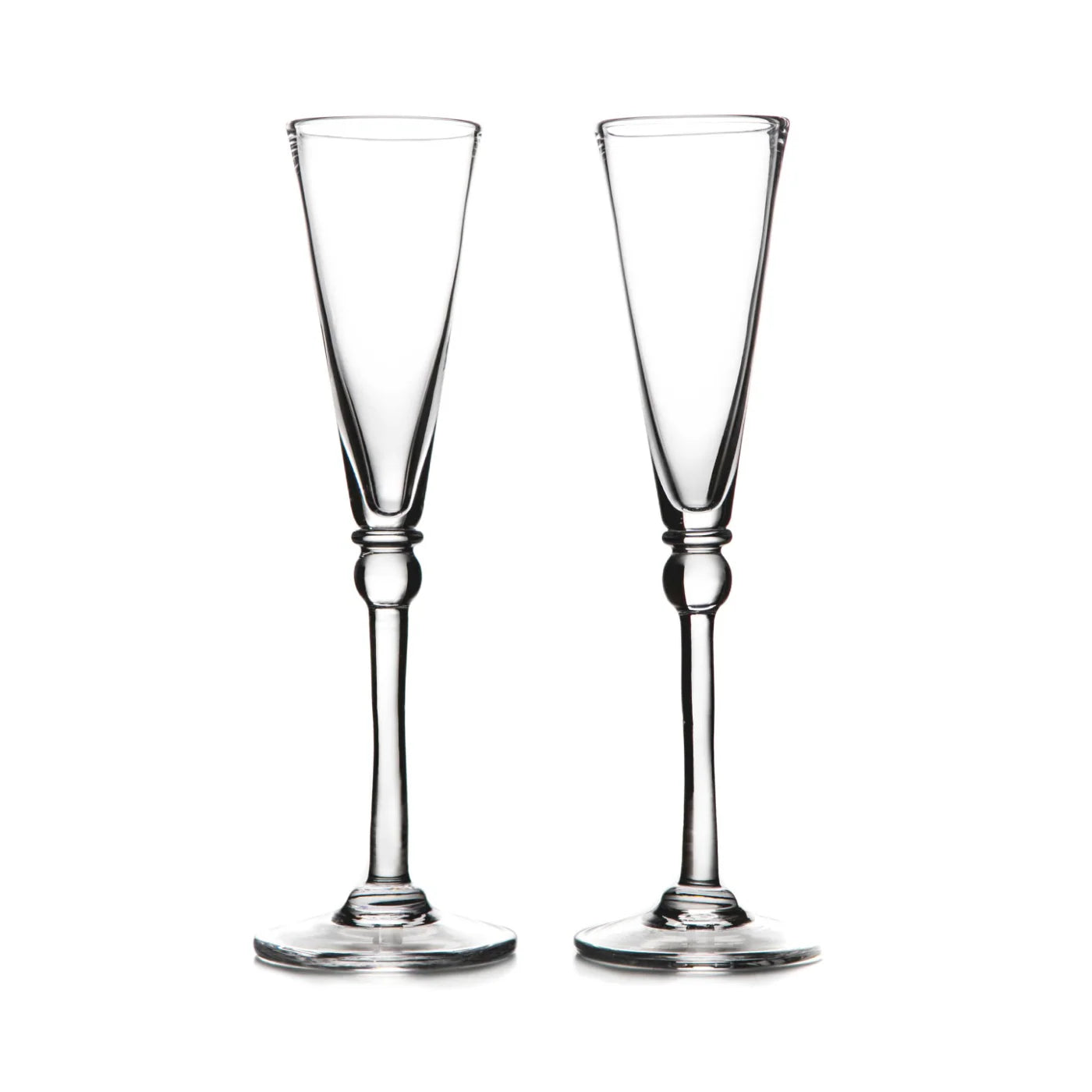 Handcrafted by two master glassblowers working in perfect harmony, the Simon Pearce Hartland Flutes showcase exceptional craftsmanship through their distinctive globe-and-stem design. Each flute reflects a deep respect for tradition and the art of glassmaking, bringing a timeless elegance to any celebration.