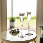 This set of two flutes makes an ideal wedding gift, symbolizing unity and partnership. Beyond their aesthetic appeal, these glasses are designed to enhance the drinking experience, elevating the enjoyment of sparkling wines and champagnes. Their enduring quality and classic style promise to inspire joyous toasts and cherished memories for years to come.