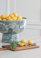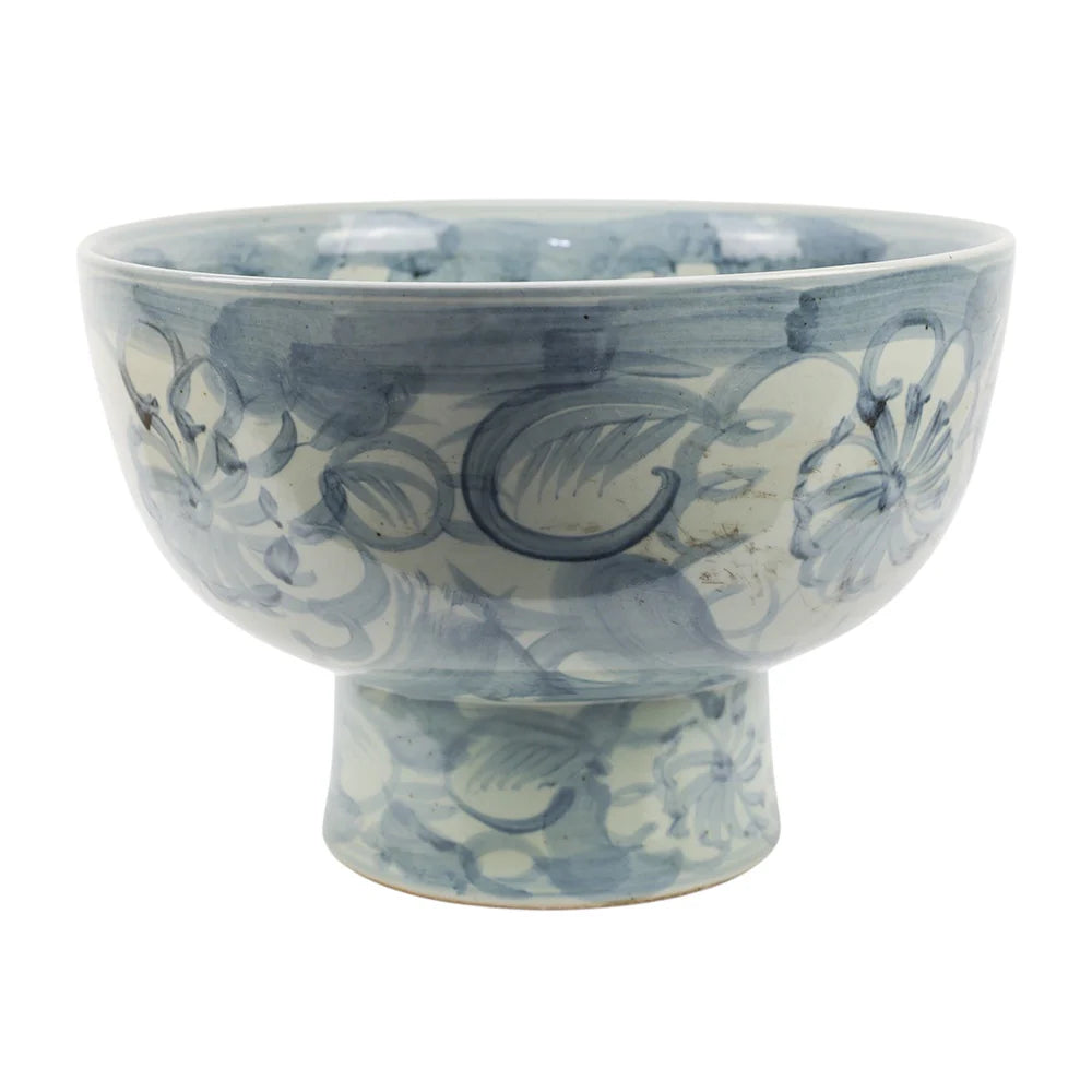- Blue & White Silla Flower Porcelain Serving Bowl Tall Base