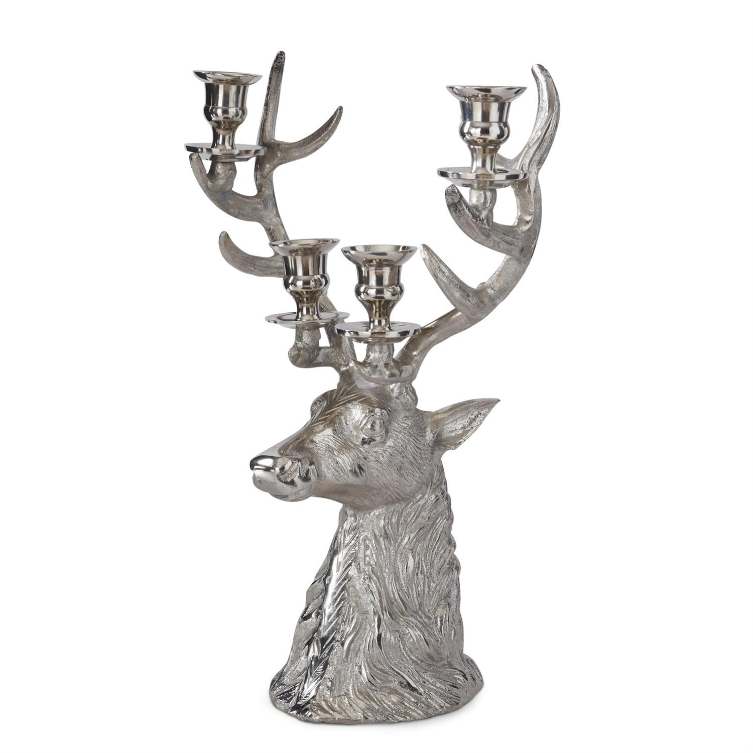 SILVER DEER BUST 4 TAPER CANDELABRA