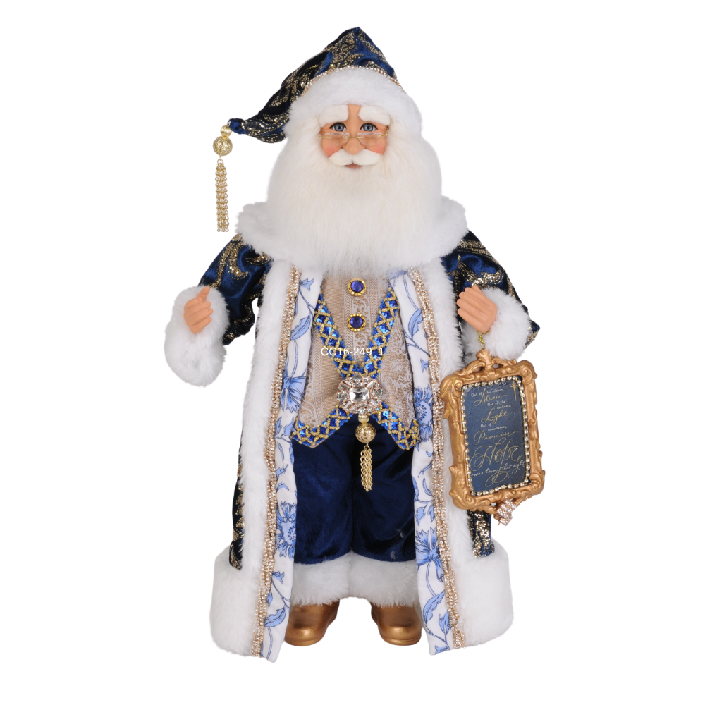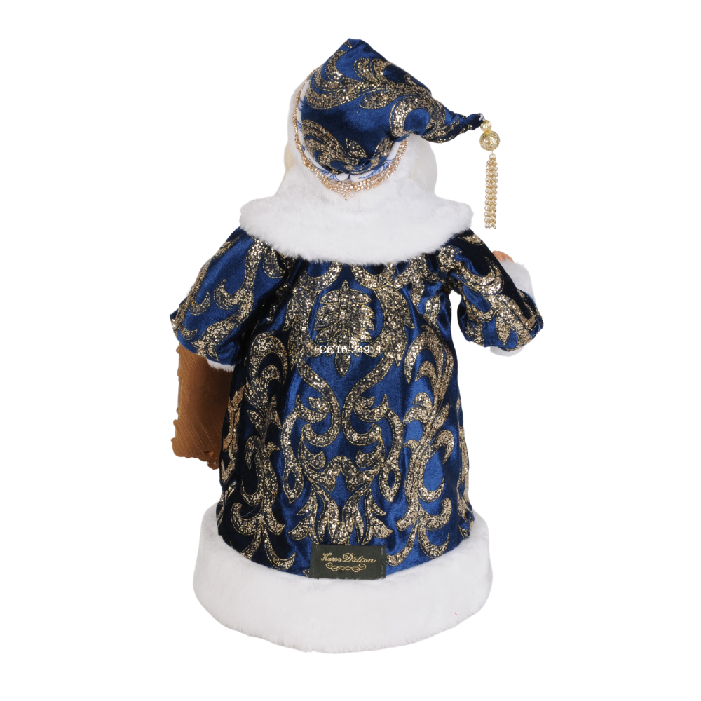 Chinoiserie Santa is ideal for any decorative surface, from shelves to mantles to countertops. Crafted with care, this piece features a hand-painted face, inset eyes, high-quality fabrics, and intricate accessories. With opulent charm, an elegant sign, and glittering accents; it adds a touch of sparkle to any home. This versatile seasonal decorative is a thoughtful addition to any room, blending classic charm and modern accents for a timeless look. Chinoiserie Santa provides an eye-catching centerpiece with the perfect combination of luxurious materials and intricate details. No matter your style, its intricate craftsmanship and detailed design creates a statement piece that stands out in your home or office, bringing timeless charm and a sophisticated holiday spirit.
