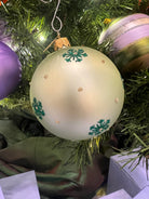Add an enchanting touch of elegance to your holiday décor with the Currin & Cade Dotted Swissflakes Ornament. This handcrafted ornament features a delicate snowflake design adorned with intricate dotted patterns that shimmer in the light, making it a perfect centerpiece for your festive tree.