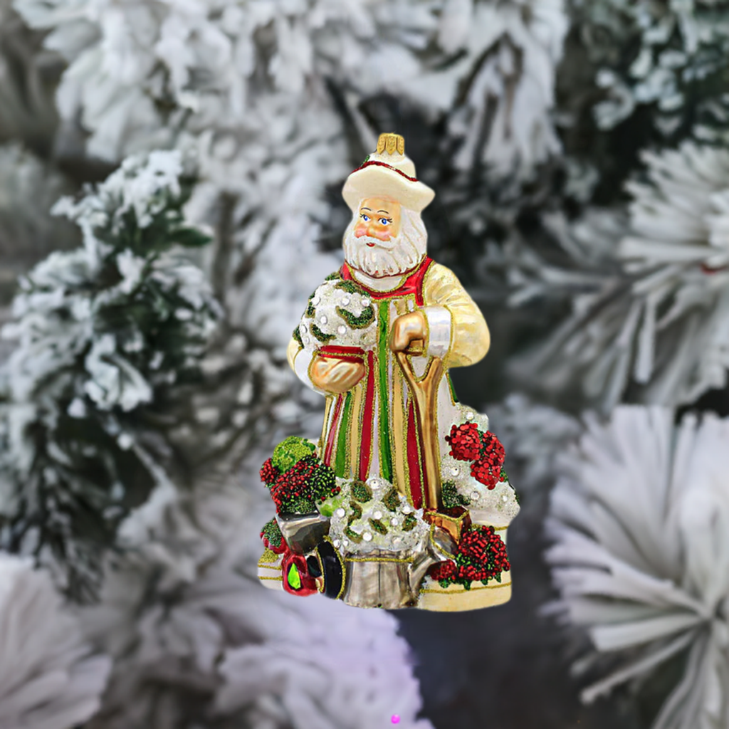 The Green Thumb Santa Ornament is a boutique collection of limited editions, each numbered. Handmade with the utmost care and attention to detail, every ornament is an original work of art. This Legacy Memory-Maker will be cherished for generations to come, taking 7 days to create. Each piece is meticulously crafted by hand and adorned with the signature elements, making this ornament a timeless keepsake to be cherished for years to come.