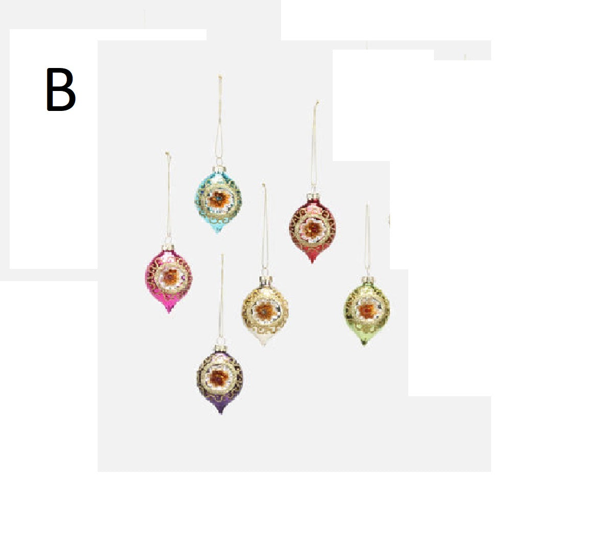 Ornate Orn, Boxed St/6, 2 Asst, Glass, 2", 2.75"