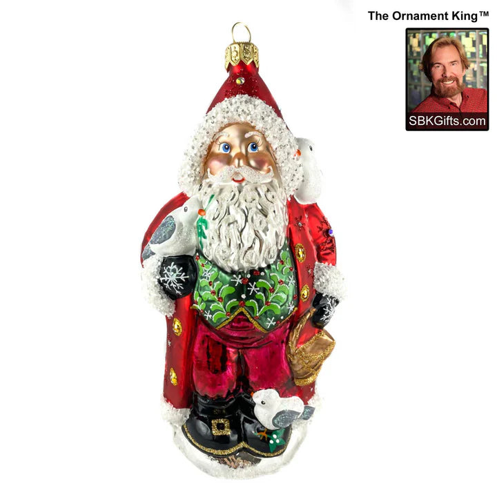 Mouth-blown from fine European glass and meticulously hand-painted, Roxbury Santa features rich color, luminous finishes, and the delicate artistry that defines The Ornament King’s signature style. Every brushstroke and embellishment reflects a dedication to tradition—each ornament taking hours of patient, masterful work.