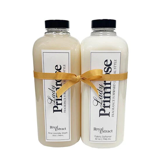 The Lady Primrose Royal Extract Laundry Set offers a refined approach to everyday care, combining function with fragrance in a luxurious way. This beautifully curated set includes a 32 oz bottle of Fine Laundry Wash, a 32 oz bottle of Fabric Softener, and a bonus glass vial of Royal Extract Pillow Spray—each item infused with Lady Primrose’s signature scent, Royal Extract.