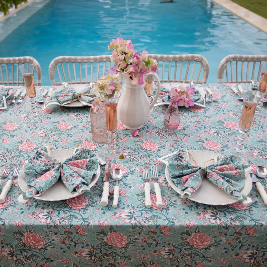 The Butterfly Garden Aqua & Rose Tablecloth is easy to care for, simply machine wash in cold water and tumble dry on low to maintain its fresh, vibrant look. Designed by Pomegranate and made in India, it reflects a commitment to quality craftsmanship and timeless style. Add a breath of fresh air to your dining space with this charming and versatile tablecloth.