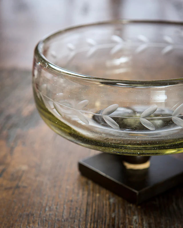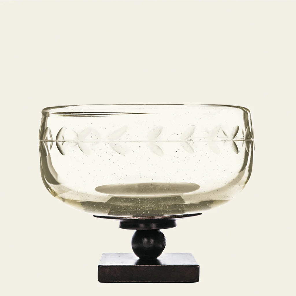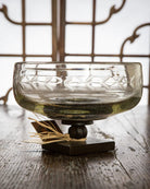 The Chalice Bowl by Jan Barbogli features hand-blown glass and intricate corona engraving, elegantly presented on an iron stand. Experience a touch of sophistication and beauty with every sip. Handcrafted with precision, our Chalice Bowl showcases stunning hand-blown glass, adorned with intricate corona engraving, and presented on a stylish iron stand.