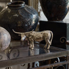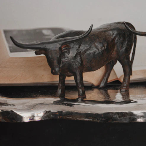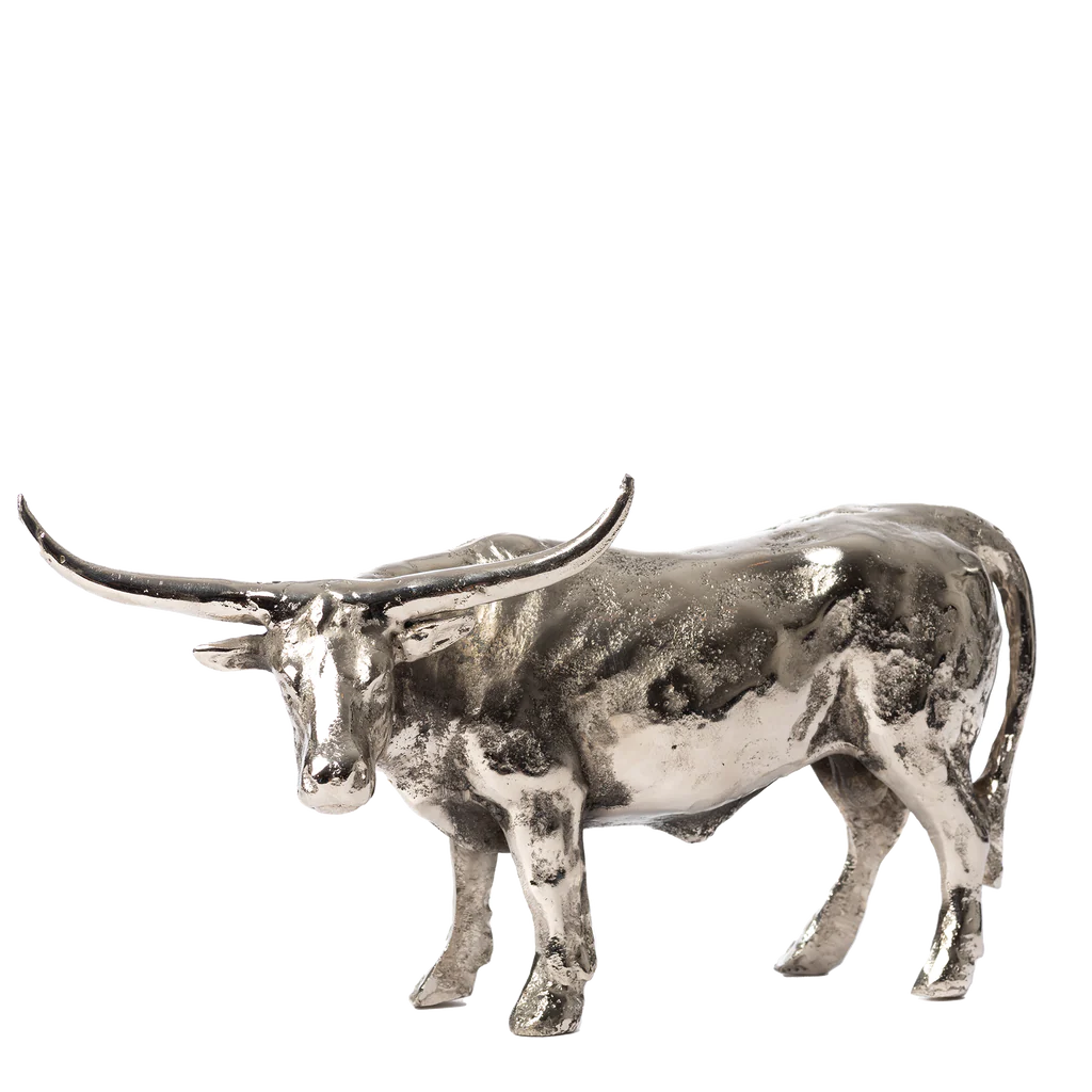 Elevate your living space with the captivating Cuerno Largo Toro sculpture from Jan Barboglio. This exquisite German nickel-plated or natural Longhorn piece is more than just a decorative item - it's a statement of sophistication and refined taste. With its majestic horn design and meticulously crafted details, it exudes a commanding presence that will make it the focal point of any room. Whether displayed on a bookcase or desk, this premium sculpture is sure to inspire and impress.