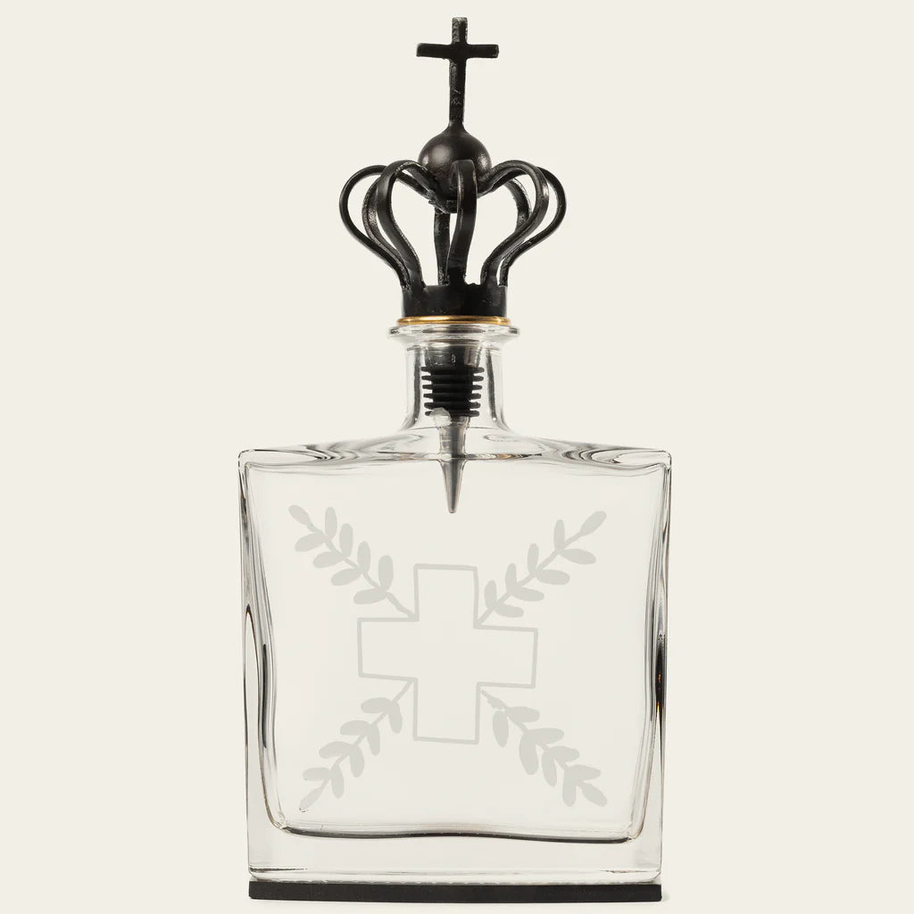 Introducing the Imperio Decanter – an embodiment of regal elegance and timeless sophistication by Jan Barboglio. This exquisite decanter is adorned with a meticulously hand-engraved cross and laurel design, transcending mere functionality to become a symbol of grandeur and prestige. Immerse yourself in the aura of history and refinement that the Imperio Decanter brings to your space. Whether gracing your bar, adorning your bath, or enhancing the ambiance of your kitchen, this piece seamlessly blends into any corner of your kingdom, elevating the aesthetic with an air of opulence. Crafted with the utmost attention to detail, the Imperio Decanter is not merely a vessel; it is a statement of artistry and sophistication. The intricate engravings reflect a commitment to timeless design, making it a focal point in any setting.