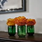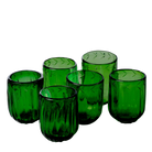 Indulge in the luxury and exclusivity of Jan Barboglio's Pequeñas Acanaladas. This stylish green votive showcases intricate acanalada patterns and an etched rim, evoking vitality and harmony. As the great artist Pedro Calderon de la Barca once said, "Green is the prime color of the world, and from it arises its loveliness." Let this elevate any space with its elegance and sophistication. Remember to never leave a burning candle unattended or let the flame burn too low, as the glass can become hot and break. Illuminate your space with the sophisticated elegance of Jan Barboglio's Pequeñas Acanaladas votives. Let the warm glow of this votive elevate your space, while remembering to always attend to the flame for safety.