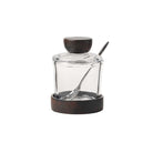 To enhance its durability and aesthetic appeal, the canister is supported by a sturdy iron base that is lined with leather. This combination of materials adds a rustic charm and ensures that the canister stands out as a beautiful and long-lasting addition to your kitchen décor. Practical in function, this canister is perfect for storing various kitchen essentials such as honey, sugar, and other condiments. The careful design and quality materials make it an ideal choice for those who appreciate both form and function in their kitchen accessories.