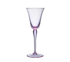 The hand-crafted, mouth-blown Ophelia Wine Glass brings style and class to any table. The sophisticated curved design translates from the tulip-shaped mouth of the glass through the curvature of the stem. These effortlessly chic wine glasses are hand-made from lavender-colored glass in the Czech Republic.