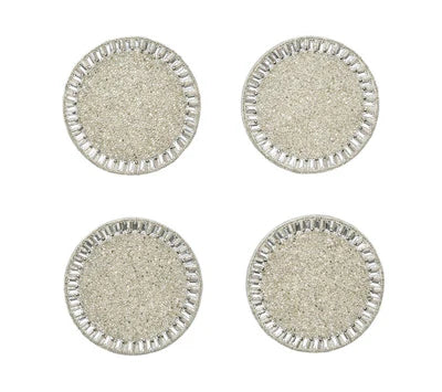 Mimicking baguette stones that are typically found on jewelry, the graceful Bevel Coasters exude understated elegance. Glass and acrylic silver and crystal beads are arranged in a pave pattern on the Bevel Coasters, creating a halo effect. These make for a glamorous accent on the coffee table or bar cart.