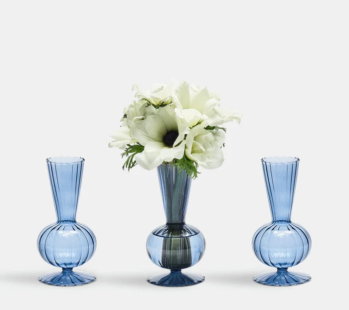 Crafted by Kim Seybert, the Tess Cadet Bud Vase represents a masterclass in functional design. This hand-blown glass vessel features an elegant architectural form—a scalloped base supporting a spherical body crowned with a tapered flute—that transforms a simple stem into a sculptural statement. The cadet blue colorway delivers sophisticated depth, seamlessly integrating into curated interiors while maintaining visual interest as a standalone piece.