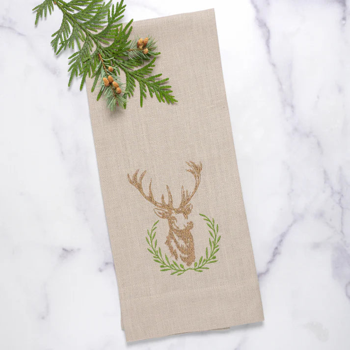 TOWEL, FLAX LAUREL WREATH STAG LINEN