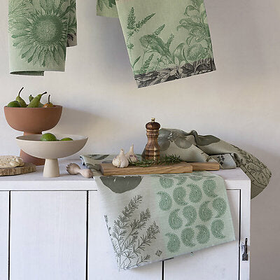 A tea towel with the sunny scents of the garden: lavender, sunflowers and herbs perfume the kitchen. A sowing of Provencal palms accentuates this southern air.