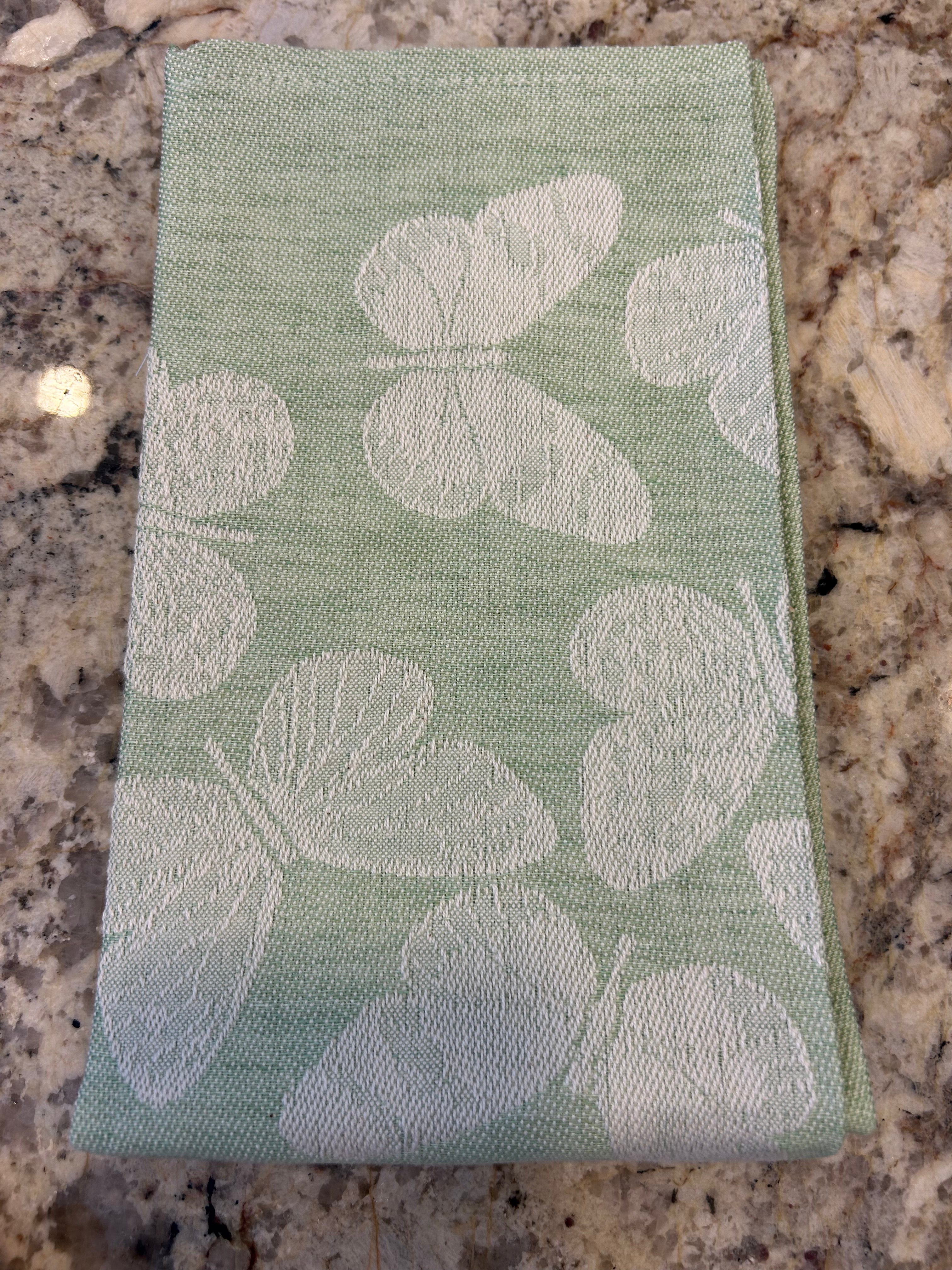 The Fauna tea towels by Tessitura Pardi are made of half linen and half cotton. Made in Italy they depict subtle butterfly designs sure to elevate any kitchen or bathroom.