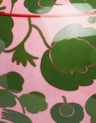 The vase’s bold, rounded shape is wrapped in a kaleidoscopic composition of vintage Wildbird prints, originally drawn from archival patterns. These prints are sliced into strips and carefully repositioned across three distinct sections, giving the vase its mesmerizing, fully wrapped appearance. Supersaturated hues of rosa and verde dominate the palette, bringing joyful energy to any room.